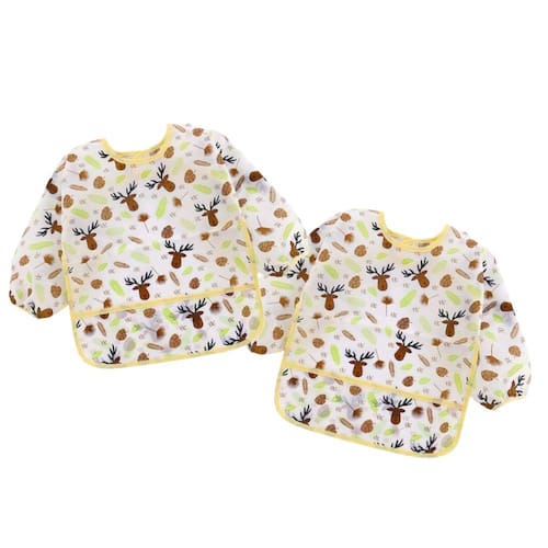 O Babador preferido das mamães para colocar em seus Bebês, manga longa, tecido impermeável e molinho, coletor de migalhas, simplesmente perfeito.