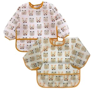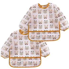 O Babador preferido das mamães para colocar em seus Bebês, manga longa, tecido impermeável e molinho, coletor de migalhas, simplesmente perfeito.