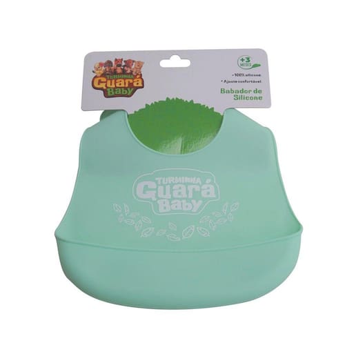 O babador de silicone da Turminha Guará auxilia na hora da alimentação.