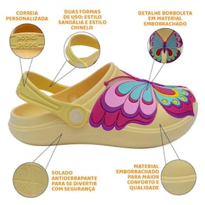 Confeccionado em material emborrachado, super confortável e com abertura para respiração dos pés. Possui solado antiderrapante, dando maior aderência em cada passo e duas opções de uso: estilo chinelo e estilo sandália.