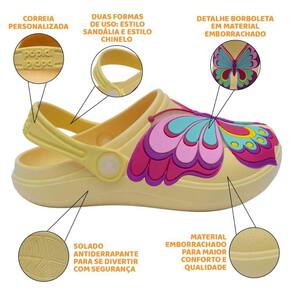 Confeccionado em material emborrachado, super confortável e com abertura para respiração dos pés. Possui solado antiderrapante, dando maior aderência em cada passo e duas opções de uso: estilo chinelo e estilo sandália.