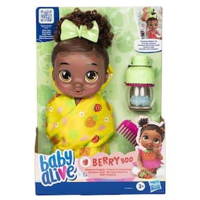 A Baby Alive Bebê Shampoo Berry Boo Negra da Hasbro promete tornar o momento do banho das crianças muito mais divertido. Com a possibilidade de inclinar o frasco para ver as bolhas de mentirinha subirem e descerem, as crianças poderão criar diversas brincadeiras criativas. Além disso, o brinquedo pode ser utilizado vazio, com água ou shampoo infantil. O kit acompanha um pente e um laço removível para que os pequenos possam também praticar penteados na boneca. E para completar a diversão, a boneca pode ser enrolada em uma toalha macia com fechos para encaixe.