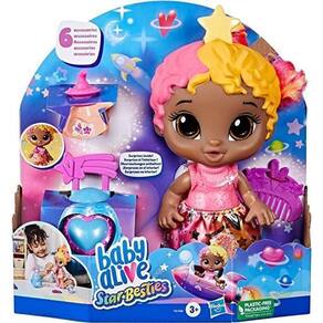 Boneca temática espaçada de 20 cm: com estilo e acessórios ousados e inspirados na galáxia, esta boneca baby alive star besties está pronta para aventuras de brincadeira de planeta boneca e acessórios inspirados em viagens espaciais: apresenta acessórios baby alive, como uma saia removível com detalhes metálicos, além de acessórios intergaláticos, incluindo uma mala espaçosa, passaporte planeta, bebida de brinquedo, pente e adesivos brinquedo de boneca nutritiva com bebida de fingir: crianças a partir de 3 anos podem fingir alimentar sua boneca bright bella com seu acessório de bebida de suco da lua capa de boneca decorada com adesivos: esta boneca baby alive para meninas e meninos de 3 anos inclui adesivos para realçar sua mala que armazena seus acessórios para diversão em movimento cabelo escovado rosa vibrante e laranja: a boneca bella brilhante com cabelo tem seu próprio visual fora do mundo com franja moldada e um rabo de cavalo colorido que as crianças podem escovar com seu pente complete a coleção: as crianças que amam bonecas baby alive vão querer colecionar todas as bonecas star besties, incluindo stellar skylar, lovely luna e bright bella. cada boneca é vendida separadamente. Sujeito a disponibilidade.