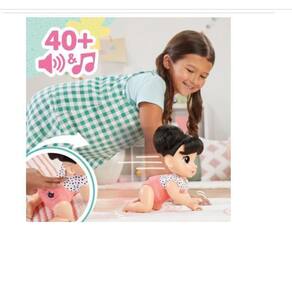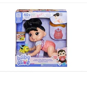 O kit Baby Alive Engatinha e Brinca traz uma boneca que engatinha de verdade. Basta apertar o botão nas suas costas para ver a boneca engatinhar e emitir sons adoráveis. Ela possui 27 cm e emite mais de 40 sons diferentes, incluindo uma música divertida. Basta encostar a mamadeira na sua boca para que a boneca emita sons de comidinha. Esta boneca vem com uma escova para pentear os seus cabelos. Esta boneca é um excelente presente para meninos e meninas a partir dos 3 anos.