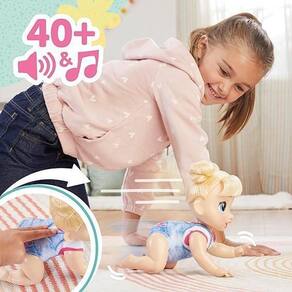 Baby Alive Crawl N Play Harper Abraços F9709 . Esta boneca interativa produz muitos efeitos sonoros fofos, como ficar animada para engatinhar, comer e rir enquanto avança. Pegue-a e pressione e segure o botão nas costas para iniciar uma melodia musical de 12 segundos para fazer seus braços e pernas se moverem como se ela estivesse dançando. Role a abelha de brinquedo pelo chão e observe suas asas subirem e descerem. Inclui: brinquedo abelha rolante, copo e escova.