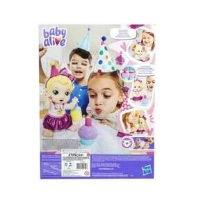 Lala GooGoo mal pode esperar para começar a celebração do seu aniversário As crianças podem brincar de organizar suas próprias festas várias vezes com este kit Baby Alive. Basta colocar a faixa de cabelo chapéu de festa para começar a celebração. As crianças podem brincar de soprar a velinha com o cupcake de mentirinha Depois de beber água da mamadeira, ela vai molhar a fralda Excelente brinquedo infantil para crianças a partir dos 3 anos para celebrar a imaginação muitas vezes seguidas. Idade Recomendada: A partir de 3 anos;Dimensões aproximadas do produto: 10cm x 35cm x 23cm;Peso líquido kg : 0,4.