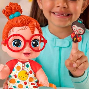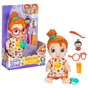 Baby Alive Pequenos Sonhos Ruiva Dottie Doodle é a companhia perfeita para a hora de dormir das crianças. Com 28cm de altura, a boneca vem com um pijama adorável e fecha os olhos ao receber a chupeta, que fica presa ao pijama para não se perder. Além disso, as crianças podem se divertir contando histórias com a marionete de dedo em formato de joaninha e brincar de escovar os dentes com a escova de dente de brinquedo e a pasta de dente de mentirinha.