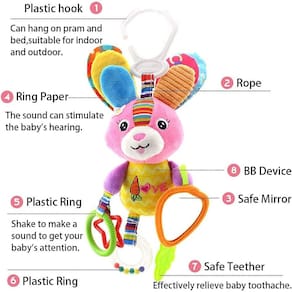"Baby Car Toys & Stroller Toys?Álva que você pode pendurar esse brinquedo de chocalho recheado no carro do bebê, carrinho ou cama com gancho. Conveniente para pendurar e derrubar, um companheiro perfeito para o seu bebê a cada momento. ?Multifunção?Teether + Ring Bell + Ring Paper + Discovery Mirror + dispositivo BB + Rattle. Atrai a atenção do bebê, estimula a curiosidade, pode exercitar a capacidade de aperto do dedo do bebê, aumentar a força do pulso, puxar o treinamento, melhorar a capacidade prática, promover a mão do bebê, o desenvolvimento abrangente da coordenação dos olhos e do cérebro. Um grande brinquedo de bicho recheado para a pré-escola. ?Rattle Toys with Teether?Made de material seguro para permitir que seu bebê mastigá-lo, efetivamente apaziguar a ansiedade de dentes. ?Anel de plástico?Com anel circular transparente e anéis de geometria. Trema para fazer um som para chamar a atenção do seu bebê. Conveniente para atividades de bebê e puxar, exercitar o aperto e puxar do bebê. ?Brinquedos De pelúcia animal?O animal e cor brilhante exercitam o sentido visual do bebê. Animal para sua escolha: Coelho / Pato / Boleta / Pássaro.