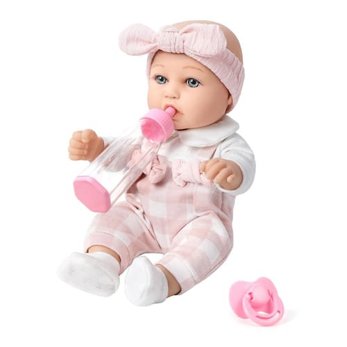 BDDOLL Boneca de bebê de 30,5 cm e acessórios de roupas, conjunto com mamadeira, chupeta, primeiro bonecos, para crianças a partir de 36 meses - O pacote inclui: boneca e roupas de bebê de 30,5 cm, mamadeiras, mamilos. - Parece real: os olhos da boneca têm uma aparência realista. A cabeça e os membros da boneca infantil realista podem ser girados, e a boneca bebê pode sentar e deitar. As roupas de boneca são removíveis e laváveis. - Seguro premium: sem fragrância, lavável, macio e suave, adequado para crianças e ecológico. Se a boneca ficar suja, limpe-a com um pano úmido e ficará como nova. - O presente perfeito: vem embalado pronto para uso ou para entregar como o presente perfeito para o Natal, feriados, aniversários ou qualquer outro momento! - Garantia de serviço: prestaremos atenção à sua experiência de compra. Se você tiver alguma dúvida ou sugestão sobre os produtos que recebe, a tempo e resolveremos o problema para você.
