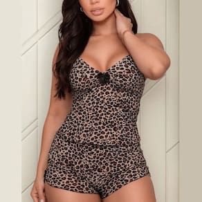 Baby Doll Feminino Liganete Pijama Sensual Estampa Oncinha 1 - Ousadia e Conforto com Estilo Animal Print O Baby Doll Rendado de Liganete Onça é a escolha perfeita para quem deseja adicionar um toque de ousadia e sensualidade ao seu guarda-roupa. Com um padrão de onça marcante, este baby doll combina a leveza do liganete com detalhes rendados, criando uma peça que exala charme e confiança. Características: Estampa de Onça: Um padrão animal print que traz um toque de ousadia e personalidade à peça. Renda Delicada: Detalhes rendados que elevam a sensualidade do baby doll, proporcionando um visual irresistível. Tecido de Liganete: Confeccionado em material leve e fluido, garantindo conforto e frescor. Alças Ajustáveis: Permitem um ajuste personalizado, oferecendo conforto e segurança ao vestir. Estilo Marcante: O padrão de onça é perfeito para mulheres que buscam destacar sua sensualidade com um toque de ousadia. Conforto e Estilo: A combinação de liganete e renda garante uma peça que é ao mesmo tempo confortável e sofisticada. Cuidados: Lavar à mão ou em ciclo delicado. Não usar alvejante. Secar à sombra para preservar a qualidade do tecido e da renda.