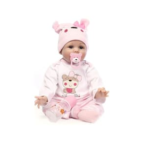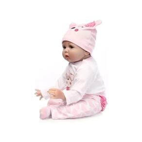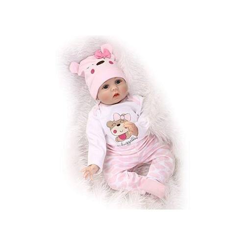 Nada melhor do que ver sua filha feliz por ter nas mãos um bebê realista que possa penteá-la com os dedos, amamentar, abrigar e até trocar de roupa. Seu tamanho de 55 cm permite que você troque suas roupas, acessórios, sapatos e fraldas para bebês recém-nascidos. Esta boneca simulada é um presente perfeito, presente de aniversário, presente de festa para meninos, meninas, crianças, bebês, amigos ou familiares. Não só as crianças, mas também os colecionadores de bonecas vão se apaixonar por essa boneca fofa e realista. Prestamos muita atenção aos detalhes das expressões faciais simuladas de bonecas fofas, cabelos feitos à mão, roupas justas e bonitas, vinil de silicone mais seguro, dedos pintados dos pés e dos pés e costuras firmes.\ nEspecificações do produto:\ nTamanho: 55 cm da cabeça aos pés\ nPeso: 1,6 kg\ nMaterial: cabeça de vinil de silicone, todos os quatro membros de vinil de silicone 3/4, preenchimentos de algodão PP e corpo de vidro\ nCabelo: cabelo artificial feito à mão. Lavável, mas precisa ser seco em baixa temperatura\ n\ neSim: não pode piscar\\ n\ nLista de embalagens\ n1 x Reborn1 x Conjunto de roupas (como na foto)\ n1 x chupeta magnética\ n1 x garrafa