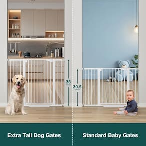 Cumbor Baby Gate --- Guardião de segurança da sua criança O portão de bebê Cumbor é projetado para manter o bebê e os animais de estimação exatamente onde deveriam estar. Este portão resistente para bebês pode ser aberto facilmente com uma mão e ajustado para caber na porta e larguras de abertura de 29,7 a 122 cm. A montagem por pressão não requer ferramentas ou perfuração, o que é rápido e fácil de instalar, não causando danos às paredes. A trava no portão pode travar o portão automaticamente, sem necessidade de esforços, o que definitivamente criará um espaço seguro para o seu bebê. Acreditamos que as mães devem ficar livres de cuidar das crianças 24 horas por dia e aproveitar seu próprio tempo. Escolha Cumbor agora para realmente aproveitar o seu tempo com bebês e animais de estimação. Dicas: ? Para facilitar a instalação, não corte o fecho até que o portão tenha sido instalado. ? A folga entre a trava e a estrutura é compreensível, nem defeituosa nem dobrada, e seria encurtada após a instalação. ? Para instalação, basta colocar o portão nas portas, escadas ou quaisquer aberturas e, em seguida, girar as porcas de tensão até que o espaço entre a alça e a trava esteja dentro de 2 mm. ? Sugerimos usar copos de parede se você quiser instalar o portão no topo das escadas para melhor segurança. ? Projetado para sua conveniência, o portão do bebê pode ser instalado através de montagem de pressão ou do hardware incluído para fixar o portão à sua parede. Conteúdo da embalagem: A Cumbor, como uma marca líder de portões para bebês, está sempre comprometida em fornecer uma experiência de compra superior para seus clientes. - Cobertura extra alta e ampla: este portão de bebê para escadas e entradas tem 91 cm de altura e se ajusta de 29,7 a 122 cm de largura; ideal para impedir que crianças, filhotes ou cães maiores acessem áreas fora dos limites em sua casa - Operação com uma mão com fechamento automático: abra facilmente o portão com uma mão; o portão fecha automaticamente atrás de você; possui uma parada de 90 graus para conveniência e segurança adicional em famílias ocupadas - Estrutura de aço carbono durável: Feito de aço carbono reforçado, este portão pode suportar impactos de até 150N; ideal para casas com animais de estimação grandes, como Huskies ou Labradores, ou crianças aventureiras - Fácil instalação com pressão: instale em minutos sem ferramentas ou perfuração; o design montado sob pressão protege suas paredes; suporte de hardware opcional disponível para maior estabilidade em áreas de alto tráfego - Ajuste personalizável e flexível: vem com várias extensões para acomodar diferentes tamanhos de porta; suporta montagem por pressão e instalação de ferragens para escadas, portas e corredores