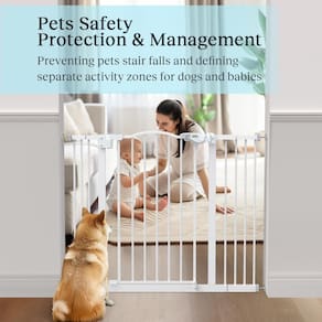 InnoTruth Portão de bebê de 73,6 a 100,6 cm para escadas, fechamento automático de ambos os lados com abertura de uma mão, portões de segurança de 76 cm de altura para animais de estimação, - Área de cobertura maior – InnoTruth Baby Gate ajusta de 73 cm a 100 cm de largura e possui impressionantes 76 cm de altura para facilitar a cobertura de escadas, corredores, aberturas de portas e outros pontos acessíveis que você deseja bloquear - Design de segurança com trava dupla – nosso portão de bebê possui dois recursos de bloqueio distintos para adicionar ainda mais proteção doméstica, incluindo um sistema de bloqueio de puxar e levantar, bem como uma trava de segurança na parte inferior do portão que trava totalmente nosso portão de segurança infantil. - Instalação adequada para parede: há parafusos de pressão ajustáveis em ambos os lados do nosso portão para cães/porta de animais de estimação, o que significa que não danifica as paredes e instala de forma rápida e fácil com o mínimo esforço. É até o portão perfeito para animais de estimação pequenos em ambientes fechados. - Recurso de fechamento automático inteligente – juntamente com um passo bidirecional pela porta, este portão de bebê para escadas e outras áreas da casa fecha automaticamente a 30 e 90 graus para ajudar a evitar que crianças ou tentem entrar furtivamente atrás de você quando você passar. - Feito para proteção infantil – dos compartimentos de 5,7 cm de largura até a altura mais alta, este portão para bebês e cães para uso doméstico se prende firmemente às paredes e portas para garantir a estabilidade. Certifique-se de colocá-lo firmemente entre dois pontos fixos para evitar tombamento.