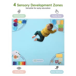 Heypappy Tapete de brincar para bebê, tapetes de 127 x 127 cm com 4 zonas de desenvolvimento sensorial para habilidades motoras, tapetes de engatinhar exclusivos com amortecimento antiderrapante que