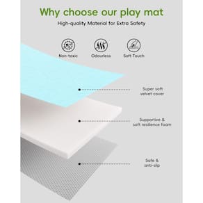 - Área de jogo macia e segura: crie um refúgio confortável para o seu pequeno brincar, crescer e explorar com conforto absoluto! Nosso tapete de brincar adota materiais não tóxicos e inodoros com capa de veludo macio, que é facilmente lavável na máquina e pode ir à secadora para que permaneça fresco em inúmeras bagunças. A parte traseira do tapete de engatinhar apresenta um design antiderrapante para garantir que o tapete permaneça firmemente no lugar. Isso permite que seu bebê brinque e cresça em um ambiente completamente seguro e confortável.
