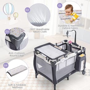 Costzon Pacote 3 em 1 e brinque com berço, playard portátil para bebê com trocador, berço, caixa de música, brinquedos giratórios, rodas/freio, cesta grande, bolsa (cinza + gota de água) - ?AcompanhCostzon o bebê a crescer? um pacote dobrável 3 em 1 projetado para o transporte de recém-nascido para criança, acompanha o crescimento do seu bebê. O trocador resistente à água mantém o bebê de forma estável e vira quando não estiver em uso. Berço removível para o bebê tirar uma soneca. O parque infantil de tamanho normal pode fornecer o amplo espaço que permite que o bebê pratique ficar em pé e andar, disponível de bebê para crianças. (Tamanho adequado do colchão: 96 x 66 cm). - ?Estrutura forte e material premium? Feito de tecido oxford de alta qualidade e estrutura de ferro antiferrugem, este playard portátil vem com forte capacidade de carga (capacidade máxima de peso do centro de atividade: 15 kg) e garante um longo tempo de serviço, adequado para crianças de 0 a 36 meses de idade. E a certificação ASTM garante a segurança do nosso bebê. O design de malha respirável oferece uma melhor visibilidade para observarmos o bebê a qualquer momento. - ?Brinquedo para pendurar e bolsa de armazenamento conveniente? O brinquedo para pendurar possui 3 bonecas fofas e uma caixa de música. As bonecas fofas não apenas promovem o desenvolvimento visual do bebê, mas também melhoram a capacidade de agarrar; a caixa de música pode acalmar seu bebê e deixar o bebê adormecer rapidamente. A bolsa de armazenamento pode ser instalada em qualquer apoio de braço para armazenar fraldas, mamadeiras, lenços e outras necessidades. - ?Rodas bloqueáveis com freios? 2 rodas traváveis com freios para estabilidade durante o uso, este centro de berçário dobrável é conveniente para transportar para que possamos movê-lo para onde quisermos facilmente. Você pode configurar e dobrar em apenas 4 passos simples. Certifique-se de travar a cerca antes de empurrar a base inferior para manter a resistência. - ?Playard dobrável e fácil de transportar? Com um botão, sem nenhuma ferramenta, este pacote premium é fácil de dobrar em um tamanho compacto que nos permite usá-lo e armazená-lo no armário ou contra a parede com facilidade. Além disso, equipado com uma bolsa de mão ajuda você a guardar o berço dobrado e oferece um lugar para o seu bebê dormir quando você sair para visitar parentes ou viajar. É a melhor escolha para sair para brincar!