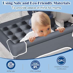 Jixrolyn Cercadinho pequeno para bebês - Cercadinho para bebês e crianças: Este cercadinho inclui dois anéis de puxar e uma bolsa de armazenamento. Medindo 91 x 91 cm com uma pegada de cerca de 800 metros quadrados, é ideal para bebês e crianças até 18 meses de idade. Seu tamanho compacto o torna perfeito para pequenos espaços como berçários, cantos de sala de estar ou quartos, tornando-o adequado para apartamentos e casas menores - Materiais ecológicos e de alta qualidade: nosso cercadinho com materiais que atendem aos padrões de segurança dos EUA (certificado CPSC e ASTM) O tecido é durável e fácil de limpar, feito de tecido Oxford de alta qualidade - Design de visibilidade total de 360°: o design de malha respirável permite que os pais monitorem seu bebê de qualquer ângulo, garantindo tranquilidade. A porta externa com zíper permite que você interaja com seu bebê, proporcionando uma sensação de segurança - Quintal de segurança para bebês: Ventosas de segurança resistentes na parte inferior do cercadinho evitam tombamento. Adicionar duas gotas de água às ventosas na parte inferior aumentará ainda mais sua estabilidade. Almofadas de canto macias minimizam batidas acidentais, garantindo a segurança do seu bebê - Fácil de instalar e transportar: você pode configurar rapidamente o cercadinho sem ferramentas ou etapas complicadas. Vem com uma bolsa de armazenamento para armazenamento conveniente quando não estiver em uso, mantendo-a compacta e fora do caminho