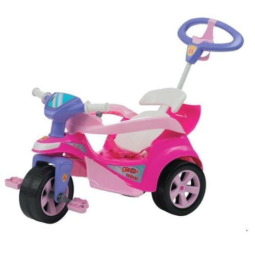 Baby Trike Evolution-Rosa Biemme Olá, sou o Baby Trike Evolution Vou te proporcionar divertidos passeios com sua família. Desde os 12 meses de idade você poderá desfrutar momentos de alegria. Quando o soninho chegar, conseguirá deitar e dormir tranquilamente com conforto e segurança e ao chegar a hora de pedalar, você irá se divertir sozinho . Rodas largas com calotas e faixas de rodagem em relevo; 2. Apoio confortável removível para os braços com conjunto didático, e também, contém porta mamadeira; 3. Apoio para os pés removível com proteção; 4. Rodas dianteira com sistema de pedais removíveis; 5. Cinto de segurança regulável de três pontos; 6. Porta objetos na parte traseira; 7. Haste articulada removível em aço carbono resistente com porta copo e gancho para pendurar sacolas; 8. Guidão com manoplas; 9. Assento anatômico antiderrapante com encosto regulável; 10. Encosto de cabeça regulável. Informações Técnicas Faixa etária: 1 à 3 anos Categoria: : Empurrador / Pedal Peso suportado: 20 Kg Dimensões da embalagem: Comprimento x Largura x Altura (cm): 78 x 44 x 36,5 Dimensões do produto: Comprimento x Largura x Altura (cm) : 120 x 45 x 100 Volume CX: 0,12 Peso bruto: 6,40 kg Peso líquido: 5,32 kg Cód. Barra: 7898319426115 Garantia CERTIFICADO INMETRO: CE-BRIINNAC-OCP-061-00658-01A NM300/2002