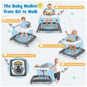 Descrição Nosso Baby Walker multiuso apresenta modo sentado, modo de ajuste de altura, modo LearnTowalk, Modo de navegação forçado, Walk Basting Mode, que combina perfeitamente com os diferentes estágios de crescimento para desenvolver equilíbrio e senso de direção