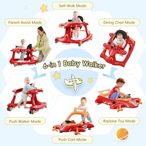 Xilingol Andador de bebê 6 em 1, andador de atividade de altura ajustável com assento acolchoado, andador infantil com rodas, andador de bebê dobrável para meninos e meninas - Design conversível 6 em 1: este andador de bebê versátil é projetado para bebês de 6 a 18 meses, ajudando-os a aprender a andar e fortalecendo os músculos das pernas. Ele transita através de seis modos: modo de assistência aos pais, modo de caminhada automática, modo cadeira de jantar, modo push walker, modo carrinho de empurrar e modo avião de brinquedo. O design envolvente do avião atende a várias necessidades de desenvolvimento e mantém seu bebê entretido. - Conforto para bebês: o andador oferece 3 posições de altura ajustáveis, permitindo que ele cresça com seu bebê e apoie seu desenvolvimento em diferentes estágios. A almofada de assento curvada evita pernas em forma de O e é removível e lavável para facilitar a limpeza. Feito de material PP respirável de alta qualidade, garante conforto e segurança para o seu filho. - Segurança confiável: Certificado pela ASTM e CPSIA, este andador de atividades para bebês garante a máxima segurança. Possui um amortecedor de segurança protetor para proteger a cabeça do seu bebê de colisões e um encosto alto ergonômico para suporte ideal da coluna. Cinco almofadas antiderrapantes evitam quedas e escorregões, e o amplo espaçamento das rodas garante um movimento estável e seguro. - RODAS FLEXÍVEIS E AJUSTÁVEIS: Equipado com 4 rodas universais lisas e silenciosas, este andador garante movimento flexível sem perturbar os membros da família. As rodas traseiras podem ser ajustadas para velocidade: gire no sentido anti-horário para um movimento mais rápido, no sentido horário para movimentos mais lentos, ou bloqueie-as para maior segurança. As rodas dianteiras giratórias de 360° proporcionam direção sem esforço. - Centro de atividades interativas: com controles de avião realistas, como volante, câmbio, espelhos retrovisores e botões de luz, este andador oferece uma experiência de pilotagem autêntica para o seu bebê. Música vívida e luzes estimulam os sentidos do seu filho, tornando a brincadeira divertida e educativa. O painel de controle removível funciona como um brinquedo independente ou bandeja de jantar. - Fácil de guardar: quando não estiver em uso, o andador se dobra em um tamanho compacto para facilitar o armazenamento sob o sofá ou cama. Seu design leve e dobrável o torna conveniente para viagens, garantindo que seu bebê possa desfrutar de seu centro de atividades favorito em qualquer lugar. Combinando funcionalidade com diversão, é perfeito para uso doméstico e em movimento.