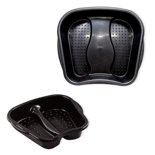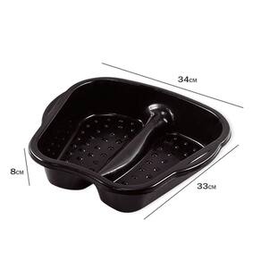 Bacia para os Pés Pedicure Essa bacia é indispensável para você que é Pedicure e Manicure, produto de excelente qualidade. Geralmente utilizada para colocar água quente e auxiliar no amolecimento das cutículas. Possui texturas em formato de mini esferas, na base, para manter com a sola dos pés e proporcionar um maior relaxamento e spa para os pés. ESPECIFICAÇÕES:Material: PlásticoDimensões: 34cm largura x 33 altura x 8cm profundidade Peso: Aprox. 150gContém:01 Bacia para Pés Pedicure