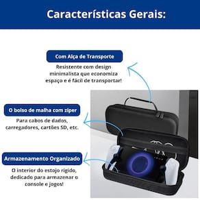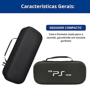 Bag de proteção com bolso extra para acessórios e compartimento para jogos. Exclusivo para PS Portal, impede movimentação e protege contra quedas.Tipo