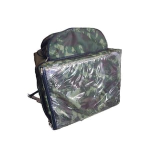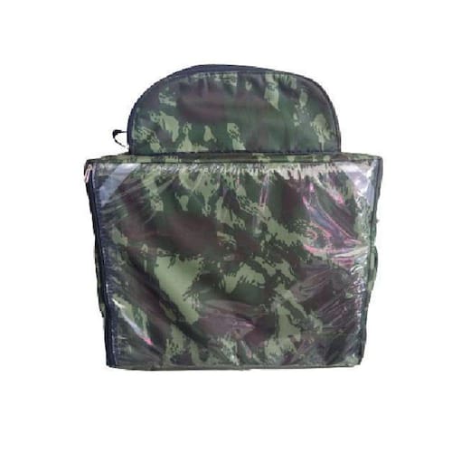 Bag Camuflada Nova moto boy com isopor de 45 litros laminadoTecido impermeável.Bolso com Ziper na parte superiorPossui Pezinhos na sua parte inferior.Mochila com Alças Reforçadas;Alças com regulador e fecho frontal, garantindo a segurança do motoboy.Suporta 4 Garrafas PET nos bolsões laterais.Transporta pizza de até 35 cmProduto de Excelente qualidade