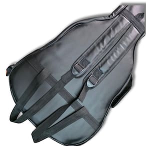 Acolchoado inclusive nas laterais Proteção para cordas em Nylon 600 Forro de nylon Bolso externo com zíper bordado com E Musical Alça lateral e frontal Duas alças nas costas tipo mochila acolchoadas