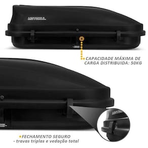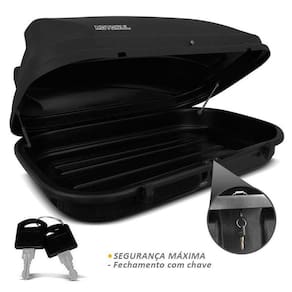 Para garantir mais resistência, o bagageiro de teto 600 litros é fabricado em plástico ABS com proteção anti-UV. Por isso, o bagageiro é resistente a impactos e ao contato constante com as variações do clima.