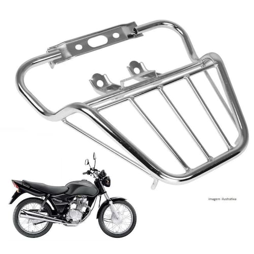 Fotos ilustrativas Acompanha Marca/modelo/aplicação: Conforme ficha técnica do anuncio Duvidas utilize o campo de perguntas antes da compra, após a compra utilize o campo de mensagens Atenção aos anuncio que possuem botões para seleção os produtos serão enviados conforme sua seleção no topo do anuncio Recomendamos a instalação em oficina mecânica especializada Itens inclusos: 01 Bagageiro Suporte Para Bauleto Aplicação: Honda Cg 125 - Honda Titan 125 - Honda Fan 125 Para Os Anos: 2000 - 2001 - 2002 - 2003 - 2004 - 2005 - 2006 - 2007 - 2008 Marca: Dvsc Cor: Cromado Obs: Não Acompanha Parafusos Imagem Meramente Ilustrativas Marca: Não Informado