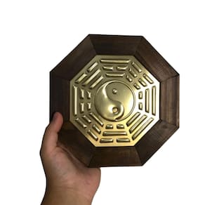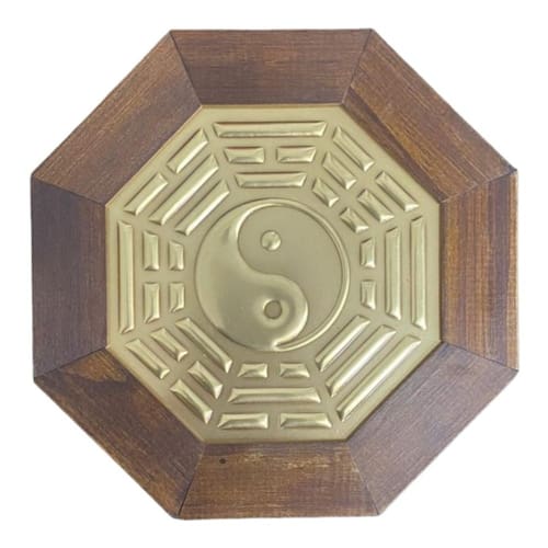 O Baguá Céu Posterior Yin Yang Madeira Imbuia Oitavado da Bialluz, com 18 cm de altura e feito em metal niquelado, este símbolo traz harmonia e sorte para sua casa ou escritório.Deixe fluir a energia positiva e afaste a negatividade com este poderoso amuleto.Perfeito para decorar espaços de acordo com os princípios do Feng Shui ou para quem aprecia elementos simbólicos em sua decoração, este Baguá é uma adição distinta a qualquer ambiente.