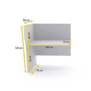 - Possui 1 furo para a passagem dos fios no canto traseiro esquerdo do tampo, medindo 4,5 cm de raio.
