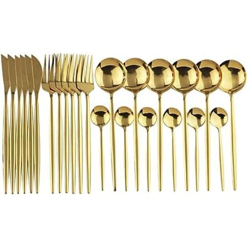 BAIHUAXIN Conjunto de talheres dourados, 24 peças, para 6 pessoas, conjunto de talheres dourados polidos antiferrugem, i Descrição: Os utensílios de mesa são feitos de aço inoxidável de alta qualidade, que é durável e antiferrugem.