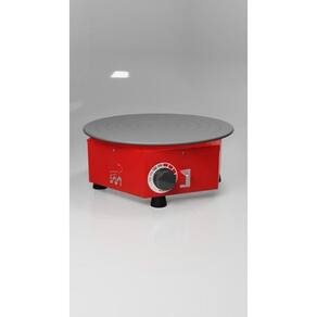 Informações técnicas Bivolt Automático; Suporta até 15kg; 10 Níveis de variação de velocidade; Embreagem para uso manual; Marcação para centralizar o bolo; Disco giratório em alumínio usinado com sistema prático de encaixe facilitando a limpeza; Corpo em aço carbono cm pintura epóxi; Dimensões e peso: Alt. 15 x Lar. 35 x Com. 35 - 5kg