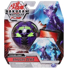 Seu Bakugan favorito acabou de ficar maior e se fundiu para se tornar ainda mais poderoso! Libere o poder da fusão Deka Bakugan, versões em tamanho jumbo de seus personagens favoritos da Aliança Blindada Bakugan da série de sucesso (agora na NETFLIX)! Faction Fusion Bakugan combina duas facções para criar personagens totalmente novos e ainda mais poderosos para você colecionar! Transforme seu Bakugan rolando-os em seus BakuCores grandes exclusivos (incluídos) e eles aparecerão, mudando de bola Bakugan de 3 polegadas para Deka Bakugan pronta para a batalha! Cada Deka Bakugan fundido apresenta detalhes e cores incríveis de ambas as facções, dando-lhe vida. Com tantos personagens para colecionar, incluindo Dragonoid x Tretorous, Pegatrix x Gillator, Nillious x Eenoch e muito mais, esses Bakugan em grande escala estão prontos para rolar! Enquanto Deka Bakugan são colecionáveis e não com o jogo de luta de brinquedos Bakugan, você pode usar a carta de habilidade incluída na Arena de Batalha para derrotar adversários e sair vitorioso! Leve sua coleção Bakugan para o próximo nível com as figuras fundidas de Deka Bakugan!