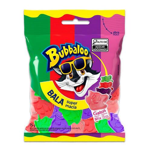 Bubbaloo Bala Super Macia Gatos Mix - 75g Delicie-se com a diversão e o sabor irresistível das balas Bubbaloo Super Macias Gatos Mix! Com uma textura super macia e formato divertido de gatinhos, essa