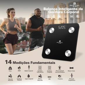 --Monitore sua composição corporal com praticidade e tecnologia! A Balança de Bioimpedância Digital Panda Plus AMG-B01 oferece leitura de 13 indicadores corporais por meio de sensores de alta precisão. Ideal para acompanhar seu progresso de forma simples e eficiente.