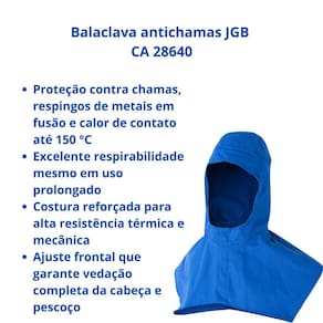 Adquira já sua Balaclava antichamas JGB CA 28640 e garanta proteção, conforto e confiança em ambientes de trabalho de alta temperatura!