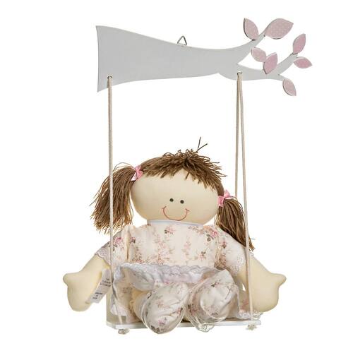 Complemente a decoração ou porta da maternidade com esse enfeite decorativo que foi desenvolvido, artesanalmente, com rico acabamento para deixar qualquer ambiente bonito e encantador. Dados Técnicos Balanço e suporte em madeira laqueada com boneca. Medidas Largura: 36 cm Altura: 34 cm