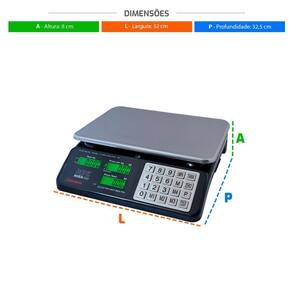 - Dimensões da Balança (AxLxP): 80cm x 32cm x 32,5cm