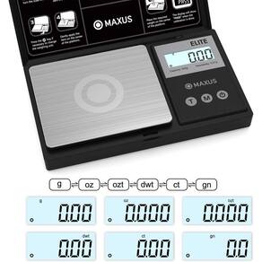 Balança de grama de precisão de 0,01 MAXUS ELITE/Balança de bolso digital Esta balança do tamanho de um smartphone oferece excelente legibilidade de precisão de apenas 0,01 grama. Ele vem com muitos recursos excelentes (declarados a seguir). Você obtém tudo isso em uma escala com o respaldo de uma incrível garantia do fabricante de 10 anos! Características principais Capacidade de garantia limitada de 10 anos: 200 g/7,054 onças/1000 ct/3086 gn/6,43 onças/128,6 dwt Legibilidade: 0,01 g/0,001 oz/0,05 ct/0,2 gn/0,001 ozt/0,01 ozt/0,01 dwt A tampa dobrável protege o sensor e a delicada plataforma de pesagem de aço inoxidável escovado Display LCD retroiluminado Durável e compacto: ótimo para pesagem de precisão em qualquer lugar, fácil de transportar e armazenar Tare Fuction em toda a capacidade. O Smart-Off sabe quando desligar a luz de fundo e quando desligar a balança para maximizar a vida útil da bateria. Oferece uma experiência infalível de calibração “Press & Hold”. Duas pilhas AAA de 1,5 V estão incluídas. O pacote contém: 1x balança de precisão digital ELITE Plus by MAXUS 1x manual do usuário 2x pilhas AAA