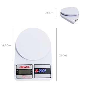 desliga automaticamente após o uso; altura x largura x comprimento; 3,5cm x 16,5cm x 24cm ; alimentação: 2 pilhas aa inclusas; graduação: 1 g; capacidade de até 10 kg; equipada com um sistema de alta precisão de calibragem; sistema de tara; função para pesar em gramas g ou onça oz ; visor de cristal líquido lcd; desliga automaticamente após o uso;