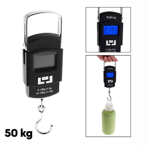 Balança De Mão Portatil Com Gancho Preciso Para Bagagem Balança Portátil Digital De Mão Até 50 Kg Prática, fácil de usar e ótima precisão. A balança é ideal para situações do dia a dia e também para . Características Ideal para produtos com peso superior a 10g e inferior a 50Kg; - Balança digital portátil para o dia-a-dia com função tara, desligamento automático; - Display de 4 dígitos com números grandes para melhor leitura; - Botão: ON/OFF; - Unidades de medida: kg, lb, oz; - Capacidade máxima de 50 quilos; - Muito leve e prática; - Possui gancho de alta qualidade, fabricado em aço, para pesagem; - Possui modo de bloqueio e memorização do peso; - Fonte de alimentação: 2 Pilhas AAA - Já Inclusas Homologação Inmetro: 6932/2021-BRI-1 Marca: Não Informado Ean: 7905230436335