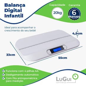 A Balança Baby Digital Pediátrica Doméstica Com Tara 20Kg é o equipamento ideal para acompanhar o crescimento do seu bebê ou até mesmo do seu pet. Com capacidade de até 20kg, essa balança é precisa e possui um painel em LCD para facilitar a leitura dos resultados.