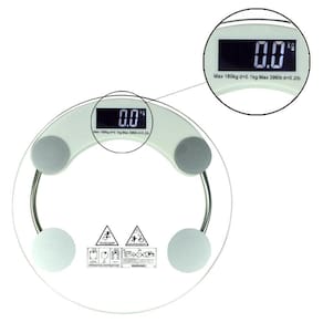 Balança digital de vidro temperado pesa até 180kg com precisão. Ideal para banheiro, academia, controle de peso em situações de regime para , consultório, spa, etc Alta precisão no sistema de sensor Plataforma de vidro temperado de 6mm Capacidade máxima: 180kg Gradação: d=100g Tamanho do LCD: 78x36mm Acionamento através de toque Zera, liga e desliga automaticamente Diâmetro: 33cm Peso do produto: 1,5kg Código do produto GT274