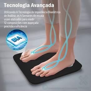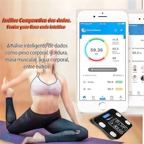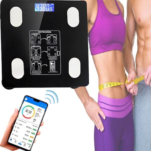 A Balança Digital Bioimpedância é ideal para você que quer cuidar da sua saúde! Você pode baixar um exclusivo aplicativo e ter em seu celular medições de: