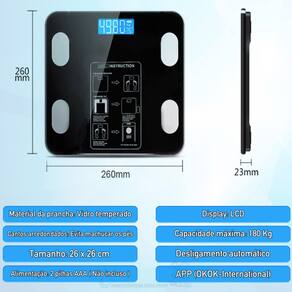 Balança Digital Bioimpedância Peso Corporal 180Kg App Bluetooth