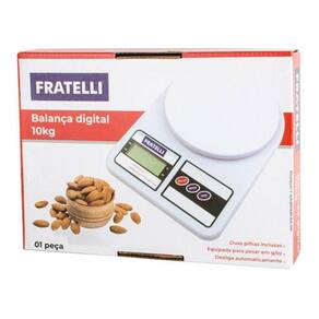 Balança digital de precisão 10kg cozinha dieta fitness Imagine controlar sua alimentação para uma dieta ou fazer suas receitas favoritas de forma fácil e prática. A balança de cozinha digital fratelli possibilita isto e ainda é fácil de transportar. Além de poder ser Utilizado em receitas culinárias e controles de regimes alimentares, a balança fratelli pode ser utilizada na pesagem de objetos ou ingredientes para diversas aplicações como postagem postal, cosmética e outras. Ela é compacta e muito precisa, suporta um de peso de até 10kg. Características: - indicador digital - capacidade máxima de 10.000g em divisões de 1g - equipada com um sistema de alta precisão de calibragem - auto power off desligamento automático - auto reset zera automaticamente - indicador do estado das pilhas ao ligar o equipamento. - conteúdo da embalagem: 01 balança digital - fonte de alimentação: 2 pilhas aa não inclusas - material: plástico e componentes eletrônicos - dimensões aproximadas da balança: 23cm x 16cm x 3cm prato: 14,5cm - peso aproximado da balança: 270g Teclas funcionais: - on/ off - liga / desliga a balança - função mode para selecionar pesagem em gramas g ou onça oz - função tare: esta função foi desenvolvida para descontar o peso de um recipiente ou produto e obter o peso real do ingrediente a ser pesado. Exemplos: descontar o peso da tigela tara ao pegar líquidos e farinhas. Ponha o recipiente e tecle tare, a balança zera. Coloque o que desejar no recipiente e pese de novo. Foto: imagem meramente ilustrativa, os acessórios não acompanham o produto.
