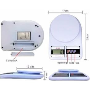 ALIMENTAÇÃO: 2 PILHAS AA (NÃO INCLUSAS) CAPACIDADE: 10KG TAMANHO APROXIMADO DA BALANCA: TAMANHO APROXIMADO DA CAIXA: PESO APROXIMADO: 390G TIPO DE PRODUTO: BALANCA DIGITAL PARA COZINHA COR: BRANCA COMPOSIÇÃO: PLASTICO E COMPONENTES ELETRONICOS QUANTIDADE: 1UNIDADE