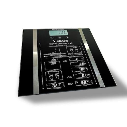 Capacidade: 3kg-150kg: Alta capacidade de medição de diferentes pesos.Sensores com tecnologia de alta precisão: Auxiliam na rápida detecção do índice de gordura e liquido corporal. Plataforma com vidro temperado de 5mm: Além de resistente dá um aspecto bonito à balança.Desligamento automático em 10s: Auxilia na economia de bateria. Indicador de bateria fraca: Indica o momento ideal para fazer a troca da bateria. 10 memórias para 10 usuários: Permite o uso por até 10 usuários tendo salvos suas informações de forma individual. Medição de % de gordura e líquido corporal: Permite um melhor acompanhamento no controle da sua saúde física.Características TécnicasCapacidade: 3kg-150kg(330lb) Peso Mínimo: 0.1kg / 0.2lb Sensores: 4 com Tecnologia de alta precisãoVidro: Temperado de 5mm Auto desligamento: Em 10 segundos Indicador de bateria fraca ou sobrepeso: Sim Tamanho do display: 73x28mm Memória: Para 10 usuários Funções: % de gordura /% de liquido corporalEscala de medida % de Gordura: 4.0 até 45.0% Escala de medida % de líquido: 27.8 até 66.0% Baterias: 1x 3v lítio CR2032 Dimensões: 280x 280x 20MM